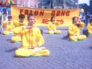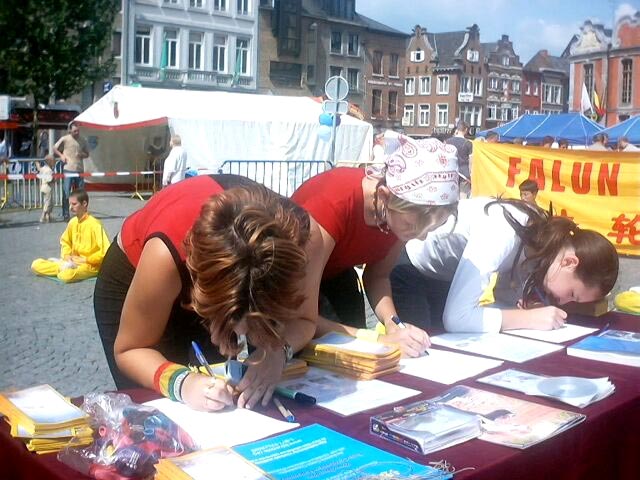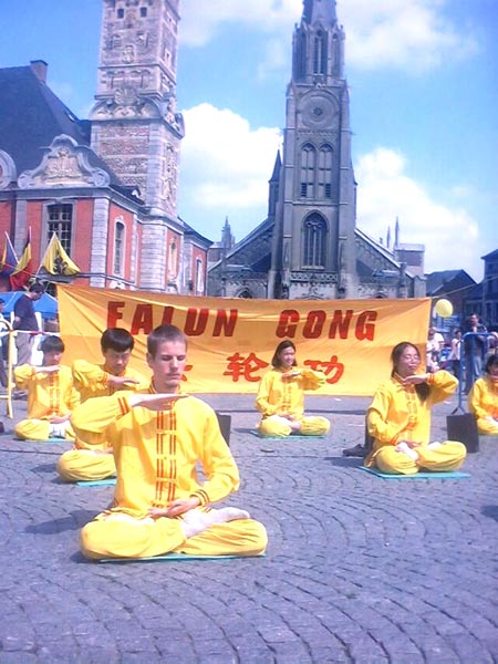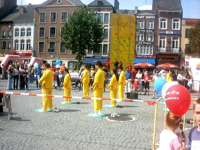 市政厅的工作人员热忱地为展览准备好了一切工作,比利时及荷兰的大法学员于8月11日来到了圣劳登市。这一天恰逢该市的气球节,各种各样的团体齐聚于市政厅门前的大广场开展活动。来参观的人群络绎不绝。我们的展位处于最中心的位置。学员们身着黄色的炼功服,跟随音乐展示功法,在一片喧嚣声中呈现出一派祥和之气。人们也都静静地伫足观看。活动的主持人热情洋溢地用麦可风向公众介绍法轮功,并数次邀请学员直接向公众介绍法轮大法是什么以及在中国所受到的迫害,后来主持人干脆自己拿起学员印制的传单朗读。他还告诉学员我们是这次活动的主要嘉宾,如果我们需要任何帮助尽管提出,在圣劳登市他们会尽全力协助的。