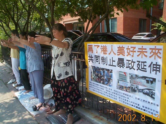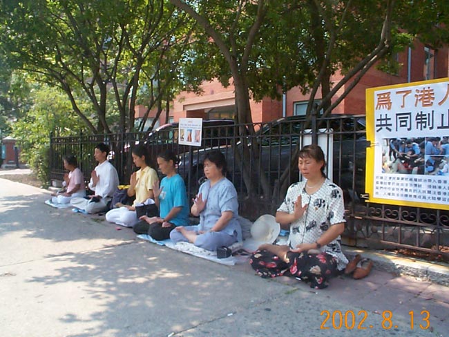 8月13日,部分多伦多学员开始了在香港驻多办事处前为时48小时的静坐请愿活动,继续为十六名在香港受到政治审判的法轮功学员呼吁。学员们递交了呼吁书和真相材料,希望香港能本着一国两制的原则,还法轮功学员公正与清白,同时抵制江政府对香港民主、法制的疯狂践踏。