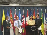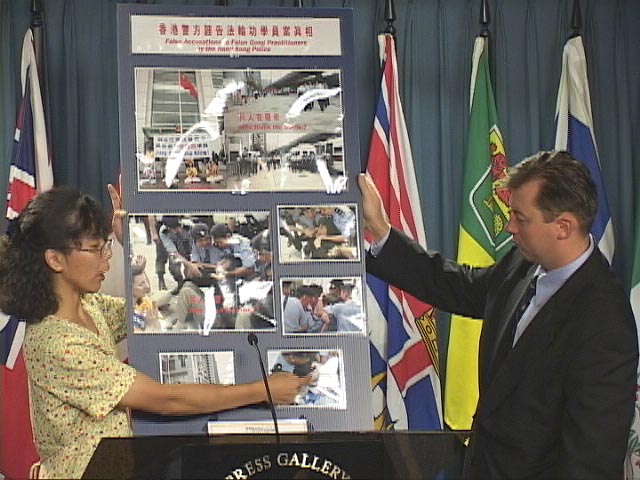 8月14日上午,渥太华法轮功学员和加拿大国会议员举行新闻发布会:呼吁香港撤诉,要求江泽民集团停止迫害法轮功。