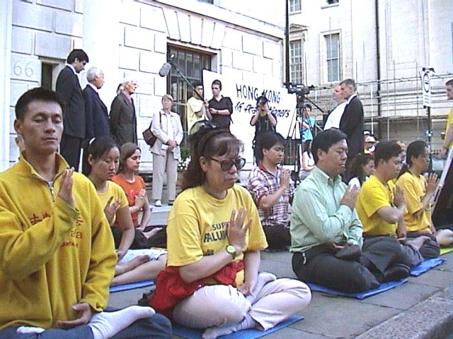 新闻发布会后,大法弟子在中领馆前炼功学法连续整点发正念直至凌晨3时。当得知香港法庭做出错误的判决后,英国大法协会于15日上午11时在同一地点再一次召开新闻发布会,呼吁英国各界关注香港回归中国后,香港公民言论和集会自由受威胁的不争事实。英国大法学会负责人哲柯、前英外交官瑟罗勋爵、莫恩勋爵及一些英国大法弟子出席了新闻发布会。