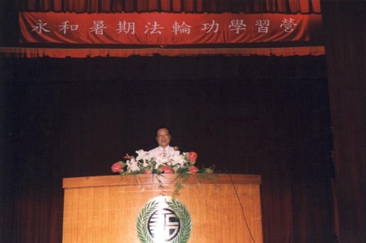 永和市长洪一平先生也亲临会场致词并聆听学员的心得分享,张清溪理事长并当场致送一份大法真相资料,市长欣然接受。在江泽民政权对法轮功铺天盖地的诬蔑和打压下,洪市长选择站在正义、公理的一方,道德勇气值得赞扬。