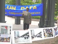 在烈日炎炎下,蒙特利尔法轮功学员召开新闻发布会,呼吁香港撤消对法轮功学员错误荒谬的审判,并揭露了江泽民对法轮功的迫害延伸到了香港。发布会后学员们举行了游行,许多市民仔细观看香港警察暴力袭击法轮功学员的真相展示图板,欣然接受真相资料。