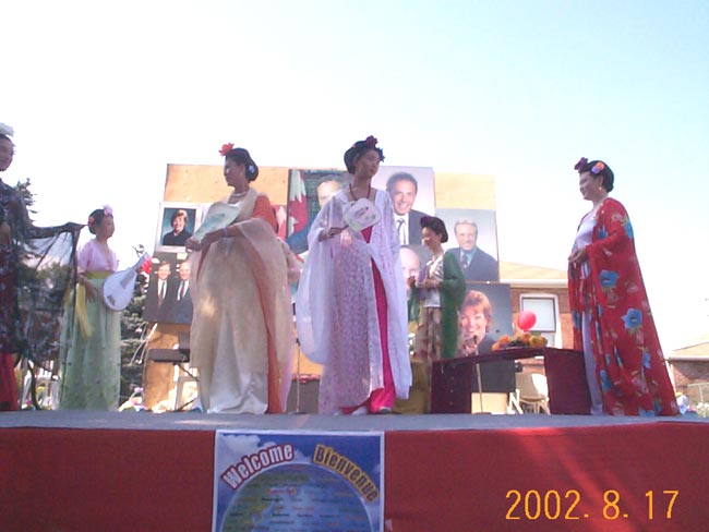 野餐会是在由四家人的后院连起的一块空地里举行的,自然、轻松和随意。活动一开始,库伦先生就向大家宣布,由法轮功学员组成的光明艺术团应邀前来表演,随着“普度”悠扬的乐曲,学员们在台上翩翩起舞,这是由六位小弟子表演的舞蹈,美丽的衣裙在夏日的和风中款款而动,她们的表演如同她们手中的莲花一样纯净、祥和,众多与会者都从四周走来,脸上透着惊喜。接下来,十四岁的小弟子表演的古筝独奏,独舞“一支花”,和剑舞表演个个精彩纷呈。最后学员们表演乐舞“美丽的唐代”,表现的是一群唐代女子的生活小片断,报幕的学员告诉大家,在唐代最鼎盛的时期,举国上下都重德向善,女性在劳作之余,更要注重在琴棋书画方面的内涵修养,那样的美来自内在。学员们的精彩表演获得了阵阵热烈的掌声,很多人说,到今天才知道,原来中国历史上有这样美丽的服装,这样美好的文化。