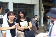 来自日本大阪、京都、神户、广岛的法轮功学员顶着酷暑,向过往的行人讲着真相,征集大家的签名,呼吁日本政府帮助营救金子容子女士。善良的奈良及其他地区的日本人民不论男女老少都非常热情地签名,有的人特意从摩托车上下来给我们签名,有时排着队要签名,学员都忙个不停,同时感到众生都有善的一面,都有明白的一面,他们都等着我们向他们讲清真相、介绍大法。