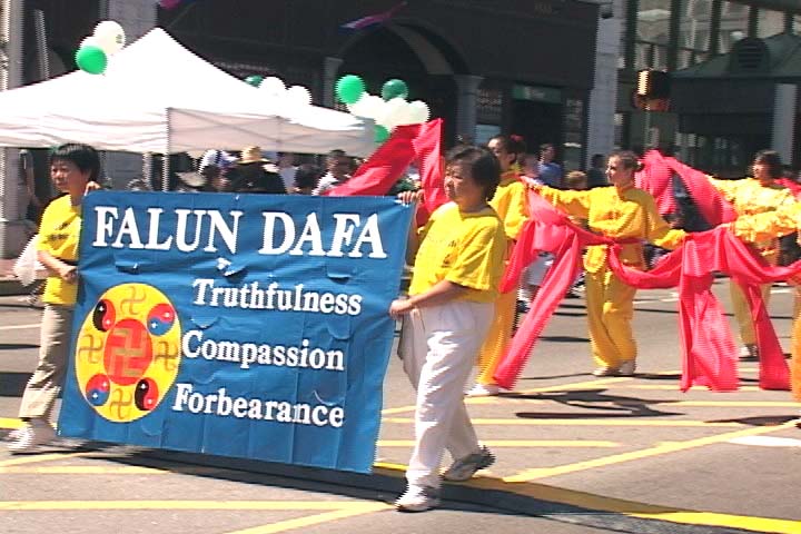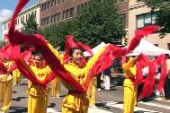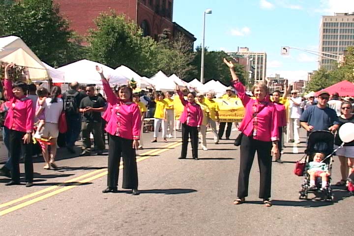 我们欢快的舞蹈队走过了十几条街,引来了许多掌声和相机镜头。当队伍走过主席台时,司仪向游人介绍我们的队伍,他觉得自己说得不是很精通,就索性招手让一个学员上台替他介绍。那位学员向游人介绍了功法,介绍了大法洪传的情况,她又特别讲了大法在中国受迫害的情况;并告诉大家,制造这场镇压的元凶江XX即将来美,呼吁人们将真相告诉自己的亲朋好友和国会议员。