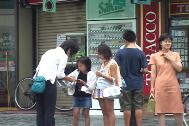 为了营救容子女士早日返回家园,羽茂町议员成立了「容子救出羽茂町议员支援会」。24和25日来自日本大阪、京都、神户、广岛的法轮功学员在酷暑中向行人介绍法轮功的真相和容子女士被关押的经过,活动得到了日本人民的广泛支持。有的人特意从摩托车上下来签名,有的地方甚至排起了队。