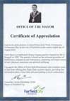| 费菲市市长发言 | 市长赠送褒奖证书 | 褒奖证书原件 |