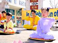 上午10时半开始至下午2时,是喜庆文艺表演,除了备受欢迎的小弟子五套功法演示、唐装服饰舞、“法轮大法好”舞蹈等表演,还有前来助兴演出的民族喜庆乐鼓表演团的民族乐鼓及舞蹈表演,西班牙社区献演的系列西班牙舞蹈及西人团体节目等。节目精彩、气氛平和,吸引了众多观众。一位女士看了小弟子的功法演示后说:“这么小的孩子,功炼得这么好,太可爱了。中国[江泽民]政府打压法轮功太不应该了。”6位女中学生和1位老师刚巧路过,被功法演示所吸引,当即不想走了,索问炼功点详情,一再表示放了假一定会来学功法;一对夫妇亦连声赞道:“太美了!太美了!”他俩手拿着真相材料对弟子说:“如果我是中国的领导人, 一定会让全国人民支持参与法轮大法,决不会像中国江泽民政府那样蠢,镇压这么好的功法。法轮大法这么美好,难怪在世界上得到60多个国家的支持。”临走时,夫妻俩还索取了当地炼功点的地址及联络电话;一位亲属在中国大陆因炼法轮功,至今仍受到残酷迫害的越南华裔对大法弟子说,中国[江泽民]政府对这么美好的法轮大法进行打压,真是糟糕透顶,镇压应该立即停止。人们乐意接受,甚至纷纷主动索取真相资料。