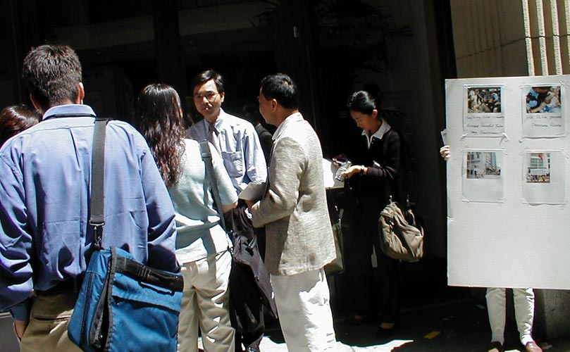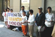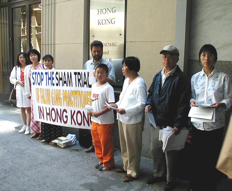 本着对香港前途的关切,学员们在办事处门前,心态祥和地向过往人士和各家媒体讲述16名法轮功学员在香港被无理起诉的真相。自由亚洲电台、湾区之声电台、大.纪.元;时报等多家媒体到场采访。