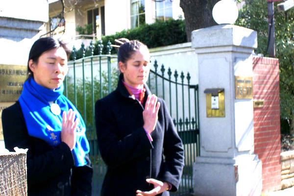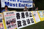现场发言人凯特女士说:我们墨尔本大法弟子呼吁全世界热爱自由民主的正义之士关注今天在香港举行的对16名大法学员的政治诉讼。今年3月14日16名法轮功学员(4名来自瑞士,12名来自香港本地)在香港中联办外静坐请愿,要求中国江泽民集团停止对中国大陆成千上万法轮功百姓的无辜迫害。他们的请愿方式是和平的、安静的,却被香港警察用暴力拘捕,后又反咬一口诬告这16名法轮功学员“阻街”“袭警”。