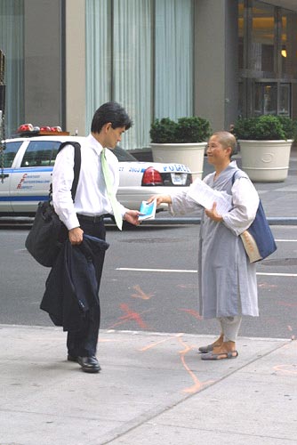 2) 法轮功学员的请愿标语一直静静地拿在手上,不会对行人有任何的危险,也不可能成为阻街物品。