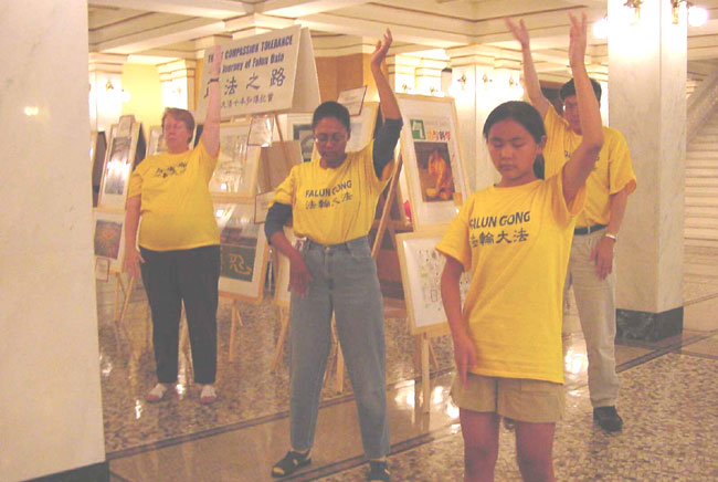 由于南达科达州地广人稀,人们与外界的接触比较少,加上大法传到这里比较晚,所以大多数人对大法了解不多。但是任何困难也阻挡不住大法弟子“用慈悲去洪法与救度世人”的脚步。在申请过程中,有关人员虽然答应给我们三天时间办展览,但不允许展出学员受迫害的图片。大家交流后都意识到这是邪恶的干扰,于是一边发正念,一边用常人的理给有关人员讲清事实真相,比如迫害的图片大部份是记者照的,而且都已经发表,这场迫害完全是邪恶的,已受到全世界善良人们的一致谴责,等等。最后问题顺利地解决了。通过这件事,学员们又一次体会到发正念和讲真相的威力。