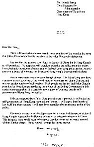 显然,你正处于一个困难的境地,但是北京当局似乎视香港的特殊地位优越于中国其它地方。如果真是这样,那么就有足够的理由释放这二十位(注:应为16位)被指控的人,不再予以追究。我希望你能够做出这样的处理。