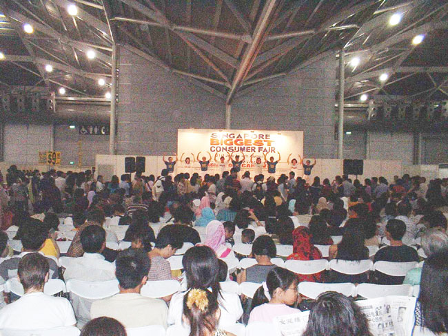 七月三十一日到八月四日,在新加坡展览中心举办了盛大的消费者用品嘉年华会。主办单位事前预计本次活动会吸引三十万顾客。新加坡的法轮大法弟子抓住这个时机,积极联络筹备,顺利地报名租用摊位售卖法轮大法的书籍。连续五天,从上午十点到晚上十点,在题为‘法轮大法遍布世界各地’的展位中,法轮大法学员们向数以万计的参观者赠送了大量的真相资料,解开了许多新加坡和中国大陆人士心中对法轮功存有的疑虑或误解,并为有兴趣学炼的人士提供了详细的信息,热情地欢迎他们前来一起炼功。