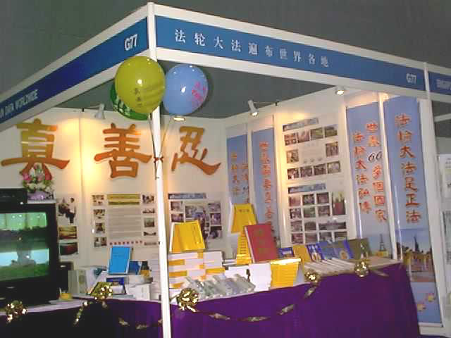 展览会的前前后后,发生了许多感人至深的故事。我们亲眼看到:通过讲清真相,许多人眼中对法轮功的惊惶消失了,代之以惊奇、理解或欣喜;有位来自中国的年青人急迫地购买《转法轮》要带回国去;有的十五六岁的中学生也能够认真严肃地阅读资料,表示相信‘法轮大法好’。在我们法轮大法的摊位对面有另一摊位,有一次,一位学员上前与摊主交谈,询问他对法轮功的印象如何。他说:“我原来对法轮功是没有好感的,因为看了报上的那些消息。可这几天我一直在观察你们,我觉得你们是好人。法轮功是好的。”还有另一位相邻的摊主,高兴地接受了我们赠送给他的资料,表示一定认真阅读。有时,当许多人从我们摊位前走过时,他竟然多次喊道:“法轮功好!”、“真、善、忍”、“法轮大法遍布世界各地。“还有一天,几位学员在前来展览会场的地铁上遇到了一位要坐飞机回中国可不知道怎么去机场的中国男子,他们热情地为他指路,随后便聊了起来。话题自然地转到了法轮功。这位中国男子对法轮功表示同情,也谈到了他了解的国内镇压的情况,当他听说这几位功友是要去表演法轮功时表示十分惊讶。学员们说:“你不如去我们的展览看看吧,反正你的飞机的时间还来得及,飞机场又这么近。”这位男士果真跟着学员们来到了展览会,高兴地取走了多种真相资料。