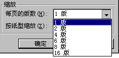 “每页的版数”是指把正常的几页(几版)按需要打印到一页上,这样就实现了缩印的功能。单击右边的小箭头,出现如下菜单,如图3所示: