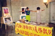 4, 有姐妹俩看到此次的广告后相约来到展厅。观后就要求学功。学员愉快的教了功。妹妹说,感到很强的能量。图片展前后,有不少人打电话要求学法轮功。