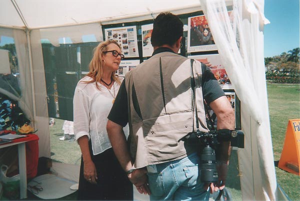 一位社区报社记者来到我们的展台,拍了很多照片,准备在下期报纸上刊登。临走时,他还索取了各种大法资料,包括光盘,准备在报上报导法轮功的消息。