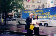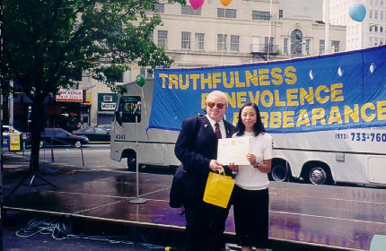 华人移民美国已有一百多年的历史,随着大批的华人来到美国,许多中华民族优秀的传统文化也不断传入美国,并逐渐地被美国人民所接受,如武术、针灸、中医等,但象法轮功这样能在短短的几年里如此迅速广泛地被美国人民所接受和爱戴是非常罕见的,不能不说是一个奇迹。作为一个中国人,一个炎黄子孙,我们怎么能不为此感到骄傲和自豪?在这次“真善忍日“庆祝活动中我们又一次看到了美国人民对法轮功表现出的热情与喜爱,同时我们也欣喜地看到,经过狂风恶浪考验的法轮大法今天在新泽西州已深入人心,她的根已经牢牢地扎在新泽西人民的心里,扎在这块美丽的花园之州(Garden State)。