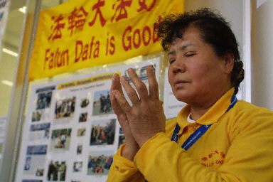 99年底,她旅行到北京。“过去在司法系统之外有个上访的地方你可以寻求帮助,但当我到那时,它已经关闭了。不知道能做些什么其他的事,我就去了天安门广场。看到学员们炼功或打坐来抗议,我加入了他们的行列。”