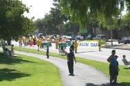 大法学员们根据现有的条件,在已有的功法表演队的基础上,另又组织了舞蹈队为观众们表演中国传统的扇子舞和红绸舞,当大法弟子身着艳丽的民族服装,挥舞着扇子和红绸翩翩起舞时,马路两边驻足观看的人群立即报以热烈地掌声,连连夸赞道“真是太优美、太好看了”,精彩的节目和祥和的风范使当地民众对法轮大法留下了良好的印象。