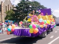 中午12点,游行队伍徐徐步入人群熙攘的市中心,法轮大法的彩车在祥和的“普度”乐曲中缓缓前行,赢得阵阵喝彩。