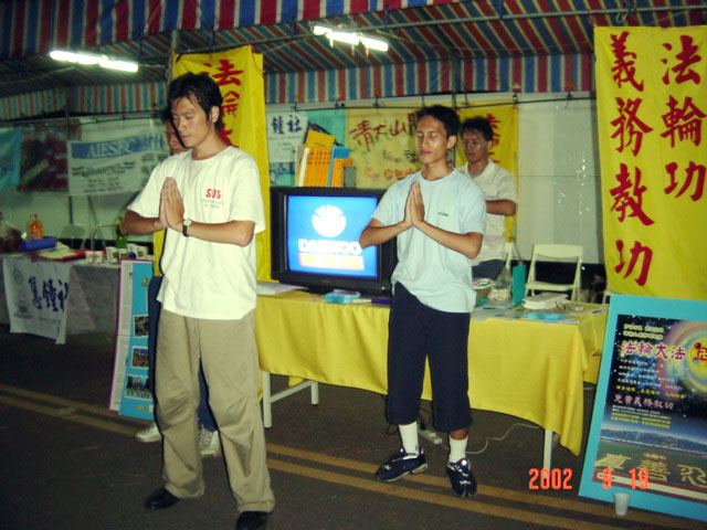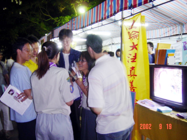 当我们观念一转,情况发生改变了,我们不只是跟人家说“欢迎参加法轮大法社”,而是更进一步地跟他们说:欢迎了解法轮功,了解法轮功被迫害的真相!这个时候,许多人开始驻足,奇怪的是他们不拿我们的大法社团的宣传传单,但却愿意拿真相材料,并提出他们心中的许多问题。当我们学员一一跟他们解说完之后,他们点点头,表示了解之后才离去。此外,电视的讲清真相也起到了巨大的作用,很多人过来看到电视上的真相之后,气愤的说:他们怎么可以这么残忍?好过分!我要支持你们,让我签个名吧。就这样一直持续到最后,居然还跑出很多接触过大法的学生走过来表示他们看过《转法轮》、或是说他们对大法有兴趣想学炼。还有人提出他对《转法轮》中的一些疑问和不解,我们学员也一一跟他们做了解释,在了解后他们都表示回去会好好的再看看《转法轮》,并留下他们的资料。确实只要我们能做好,师父什么都会帮我们做,有缘人自然就进来,该听真相的一个都落不下。