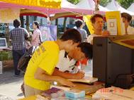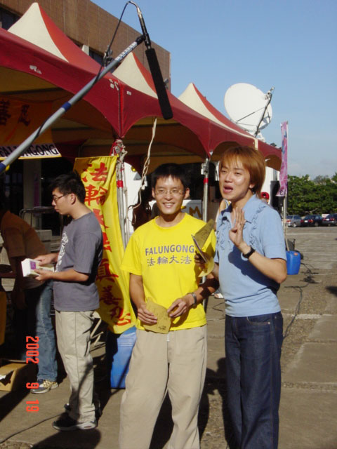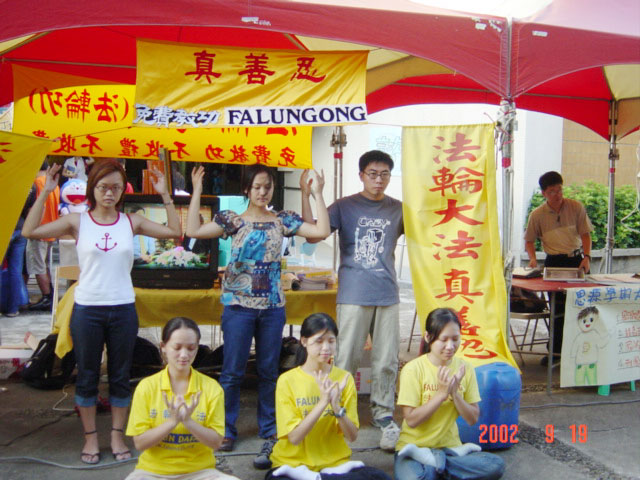 【明慧网2002年9月26日】九月十九日下午,在交通大学中正堂前正在进行交大社团联展,法轮功学员也欣然参加。这次活动每个学员都尽心尽力在做,希望让大家知道校园中就有法轮功学员,让青年学子有机会接触并了解大法,不落下任何一个有缘人。我们将在这次活动后开始清华和交大两高校的联合集体学法读书会。