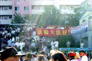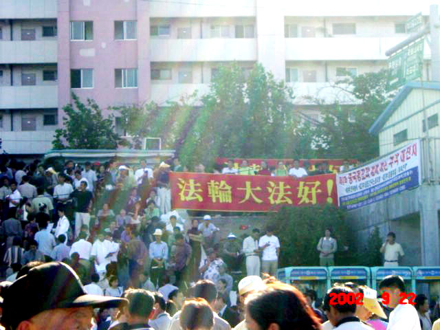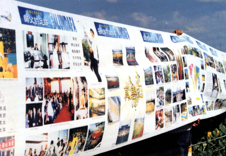 下午4时大联欢结束,5时半大部分已走出现场,但后走的人群一到图片展处就驻足观看,图片展持续到夜幕降临的7时,甚至图片展结束后仍有一群朝鲜族逗留,与我们学员交谈,令我们深受感动与鼓舞,我们觉得这些中国朝鲜族大部分人很想了解法轮功真相,而我们做的远远不够。