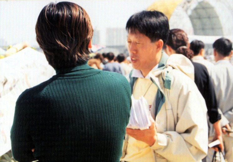 我们发现,与去年相比,中国人更愿意接受大法真相资料,除极个别人外,几乎人人愿意看。大法弟子们运用智慧,精心准备了两份常人比较容易接受的报纸,大规模散发。半个月前汉城法会时台湾同修给我们送来的几千份刊有大法真相的华人报纸,还有前几日<韩国言论协会会报>曾花一整版的篇幅详细介绍了揭穿中国当局制造所谓“天安门自焚事件”的阴谋与美国国会第188号“法轮功支持案”。游客们争先恐后地伸手要这些报纸。大法弟子还特意制作了3000盘“歌谣舞台”,在朝鲜族喜闻乐见的韩国传统歌曲节目中穿插了美国和台湾同修制作的VCD真相录像,结果此3000盘真相录像供不应求,一些人告诉我们要将此录像带寄到东北老家去。