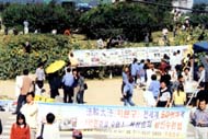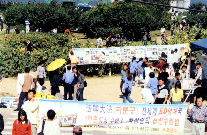 经过九月亚太汉城法会,汉城地区大法弟子们更加强了整体的意识,都能积极主动地投入到讲真相、救度众生的正法洪流中来。其中几十位朝鲜族学员起着积极的作用。这次活动学员们比任何一次活动都自觉行动,主动去干,在伸向汉江市民广场的台阶下面与岔道上无法挂横幅的情况下,汉城辅导站站长与同修们顶着骄阳暴晒,轮换举起大法横幅与印有图片的横幅长达6个小时之久!