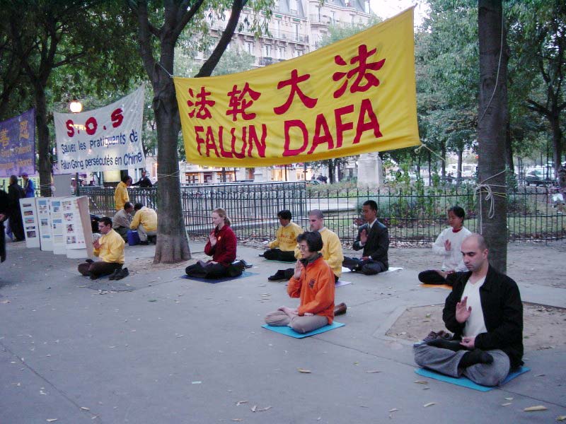 【明慧网2002年9月29日】9月27日傍晚,一些法国法轮功学员陆续来到市中心,炼功、发正念、