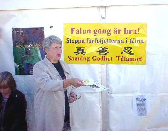 首先两位瑞典的法轮功学员应法轮功之友主席的邀请作了发言。接着又播放了“正法之路”和“是自焚还是构陷?!”的录像片。听众们对法轮功究竟是什么,以及镇压的邪恶有了进一步的认识,有些甚至被感动地流下了眼泪。许多人在讲座结束后,又问了很多问题才离去。