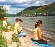 终于走过了山谷地带,又来到莱茵河边。沿着诗情画意的罗累莱(Loreley)山岩,我们有幸遇到不少中国人。他们从老远就看到我们的中文字,并想知道具体情况。有一个刚来德国的中国姑娘,闻知对法轮功的迫害后深感震惊,她迫不及待地翻看起我们的材料来。中国铺天盖地的恶毒宣传真害人啊!这又一次告诉我们,向中国人讲真相有多重要。