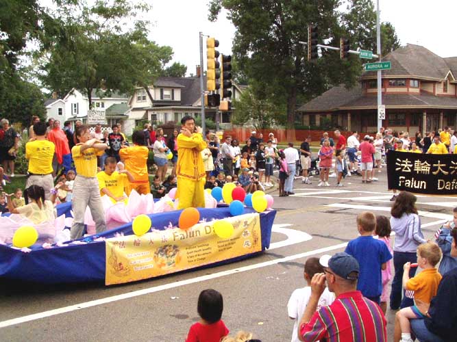 2002年九月二日,美国芝加哥地区的学员参加了娜泊维市(Naperville)的劳动节大游行。娜泊维市是芝加哥附近的一个城市,拥有13万人口,也是华人聚居最多的地方,也是邪恶干扰破坏最厉害的地方。经过娜泊维市学员们的共同努力,我们破除了邪恶的破坏,获得了发大法材料的许可。