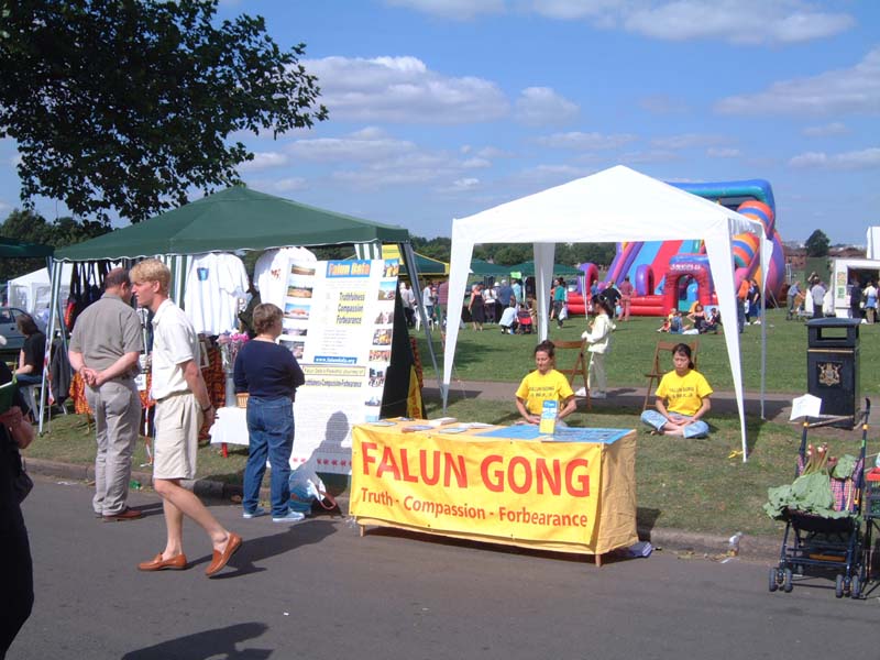 一位在当地政府部门工作,负责处理中国人福利事宜,和诺丁翰的中国人社团有联系的职员来到大法展位,他想知道法轮功到底是什么。他和一位大法弟子交谈了很久,知道了迫害的真相。