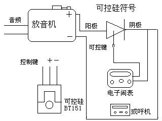 3. 原理:当电子闹表(或呼机)发出正脉冲时,可控硅的控制键就使可控硅的两极成自动固定连结。