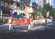 10:30游行开始,学员们在游行队伍中拉起了大法横幅,伴随着悠扬悦耳的音乐和学员们愉快友好的笑容,把大法的美好再一次带给这里的市民。