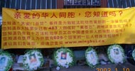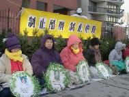 据不完全统计,自2002年11月以来海外披露中国境内43件法轮功学员被迫害致死案件,其中22人是在11月后被迫害致死。这是江泽民集团对善良百姓犯下的又一滔天血债。江氏集团镇压法轮功三年多来,手段使绝,酷刑用尽──仅仅为了维持其极端错误的镇压善良法轮功百姓的邪恶决策,为了一己的私欲和丑恶脸面。然而,法轮功不仅没被消灭,反而弘扬全世界。现在我们看到,江氏集团竟以虐杀法轮功学员的方式妄图达到其目的,疯狂行为令人发指。为此,法轮功学员来到芝加哥中领馆,向中国政府呼吁立即停止对法轮功学员的迫害,呼吁世界上所有善良的人们,站出来共同抵制这种灭绝人性的犯罪。