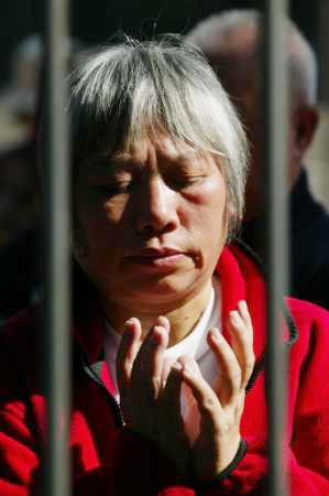 路透社2003年1月9日报导,法轮功学员在香港立法院外进行请愿。在中国大陆被禁的法轮功担心反颠覆法将严重损害香港长久以来享有的基本公民自由。
