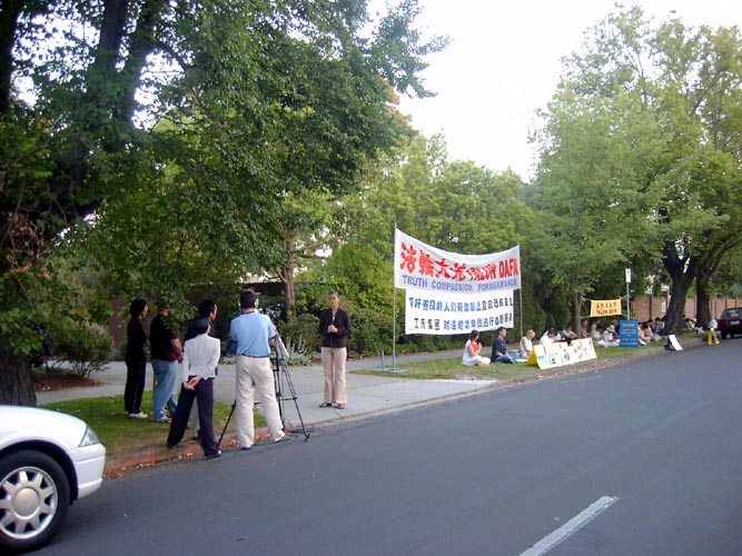 据悉,周一、周二两天活动将继续进行,预计周二上午将再次在中领馆前举行新闻发布会,以唤起更多的人对发生在中国的对法轮功学员的大规模虐杀的关注。