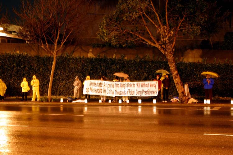 【明慧网2003年1月13日】自去年11月以来,海外揭露有43名法轮功学员被江泽民集团虐杀。今天,2003年1月12日中午,旧金山湾区大法弟子纷纷到中领馆前静坐抗议,向社会各界揭露江氏集团对法轮功残酷