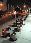 这日虽然天气晴朗,气温却很低。尤其是中领馆的一小片地带,阴风阵阵,格外寒冷。参加和平请愿的学员们却丝毫不为所动,在寒风中持续炼功、发正念,以自己的正念正行坚定地清除另外空间的邪恶因素,声援大陆同修。