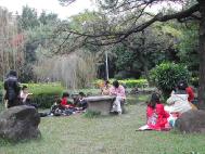 「高年级班」学生人数较少,有时候会在校园水池边学法。
