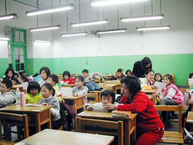 【明慧网2003年1月14日】台北明慧学校成立至今已一年多了,固定于每个月第二及第四个礼拜天下午租用国立台湾大学法学院教室上课,目前共有四班,分别为「幼儿班」、「中低年级班」、「高年级班」及「台语班」。「幼儿班」学员为学龄前儿童,「中低年级班」为小学一至四年级学生,「高年级班」包括小学五、六年级及国中以上学生,而「台语班」则大多为不识字的爷爷及奶奶辈的学员,但也有少部份是特地来学习用台语念「转法轮」的。