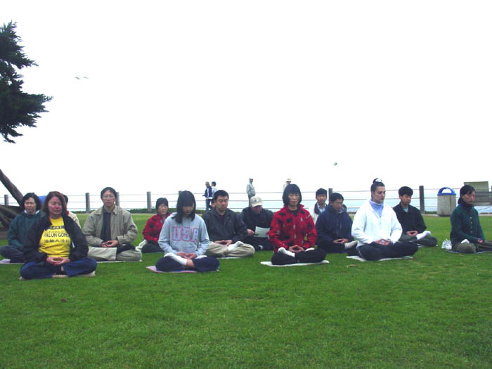 1月12日上午8时,美国加州圣地亚哥法轮功学员在当地进行炼功请愿、发正念。与全球各地法轮大法弟子一道,进行三日全世界范围的和平请愿活动,强烈要求中国江氏集团立即停止在中国对法轮功学员的虐杀。