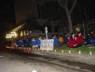 下午驱车百余英里赶至洛杉矶中领馆前,与洛杉矶当地弟子一同举行烛光守夜,强烈要求江氏集团立即停止对法轮功学员的迫害,呼吁世上所有善良的人们站出来共同制止这场灭绝人性的犯罪。