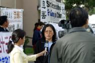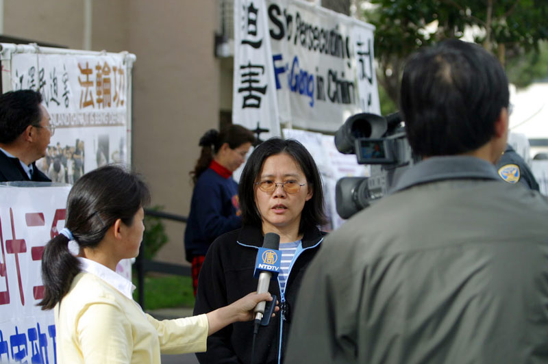 法轮功学员的代表许先生向与会媒体和观众介绍了去年11月份以来江氏集团迫害升级的残酷事实。在不到两个月的时间里,已知被折磨虐杀的就有43名法轮功学员,他们当中有退休老干部、高级工程师、教师、医生、工人、农民和家庭妇女。他们都是社会上的好人。江氏集团这种疯狂行径正说明其末日快到了。来自四川成都的付先生控诉说,他善良的妻子因坚信法轮大法就被长期无端关押,并不准探视,受到了非人的摧残。