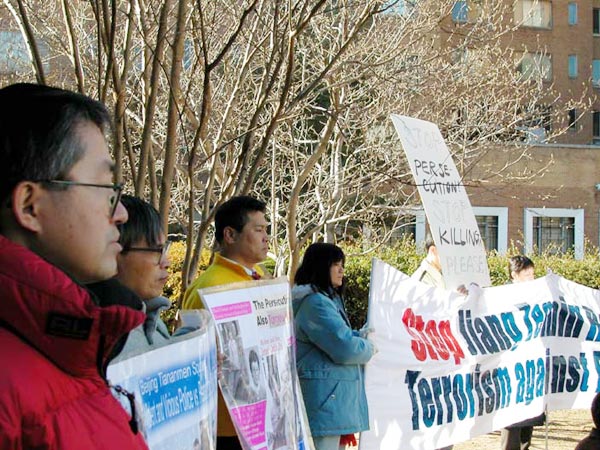 【明慧网2003年1月15日】2002年11月以来海外披露出43件法轮功学员被江泽民当局虐待致死案件,其中有22人是在11月后被迫害致死,至此在这场残酷的镇压中,已经确认有超过550名法轮功学员死于江氏集团及其下属610办公室的酷刑折磨。为此海外法轮功学员自1月12日起,在全球50多个国家发起连续三天的大规模请愿活动。华盛顿DC的法轮功学员1月13日在中国大使馆门前召开新闻发布会,将法轮功所遭到的残酷镇压向媒体曝光,并呼吁国际社会的关注。