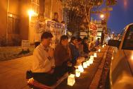 为悼念那些在国内被迫害致死的学员,当地法轮功学员自1月12日至1月14日连续三个晚上在中领馆前举行烛光守夜活动。